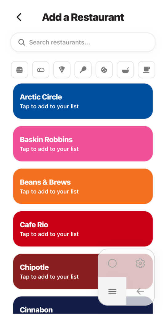 Navigate to the Restaurants Tab, choose Add Restaurant to add that restaurant’s current offers to your list!